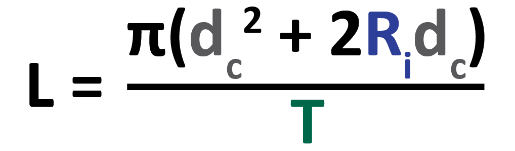 We need to start with a little math to make sure we’re all on the same page. Here is the equation for the length of material on a coil roll.