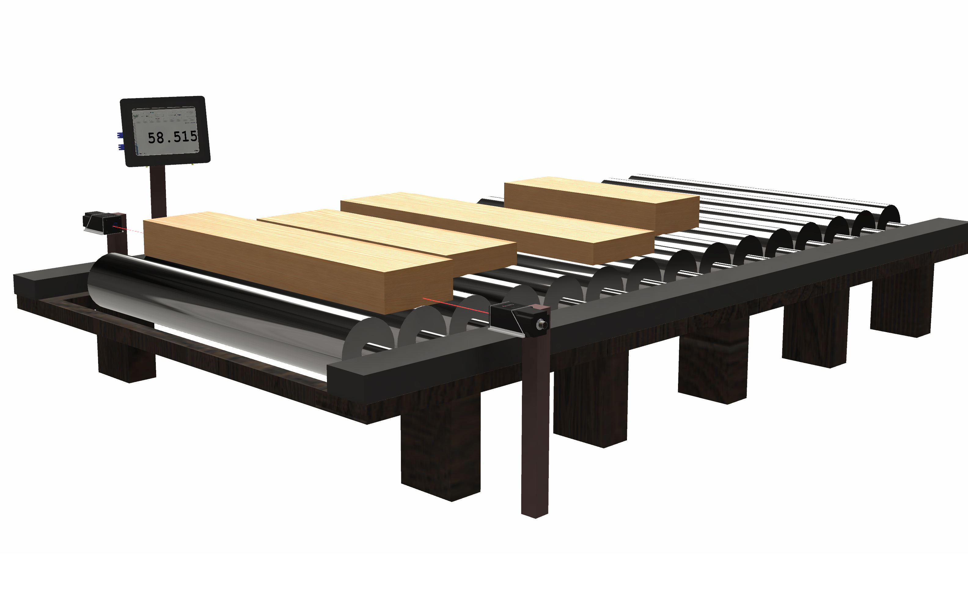 The sensors work in pairs from opposite ends of the lumber, measuring and calculating lumber length in tandem for the greatest accuracy. While it’d be tempting to use one sensor and say, hire someone to get all of the boards flush against a zeroing board, the two sensor system works best, rapidly and efficiently measuring your lumber on your preferred conveyor system.